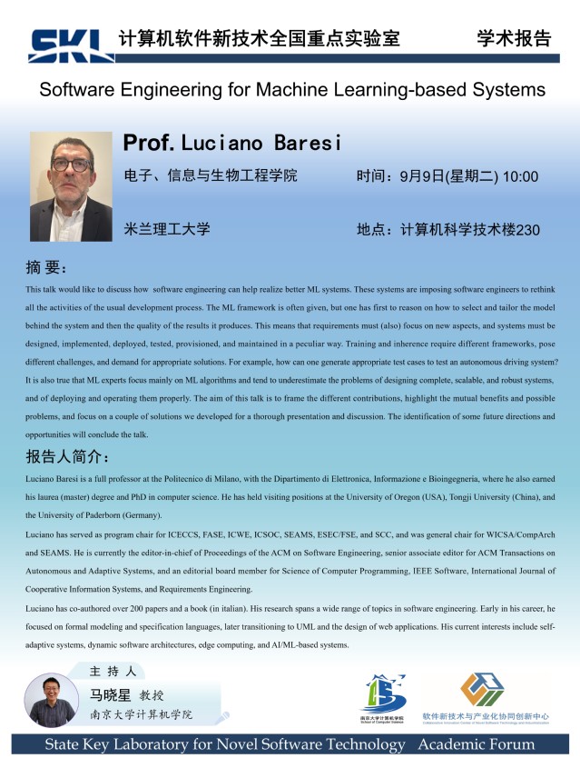2025年9月9日 “软件新技术讲坛” 学术报告 - Prof. Luciano Baresi