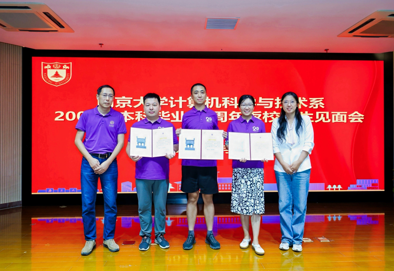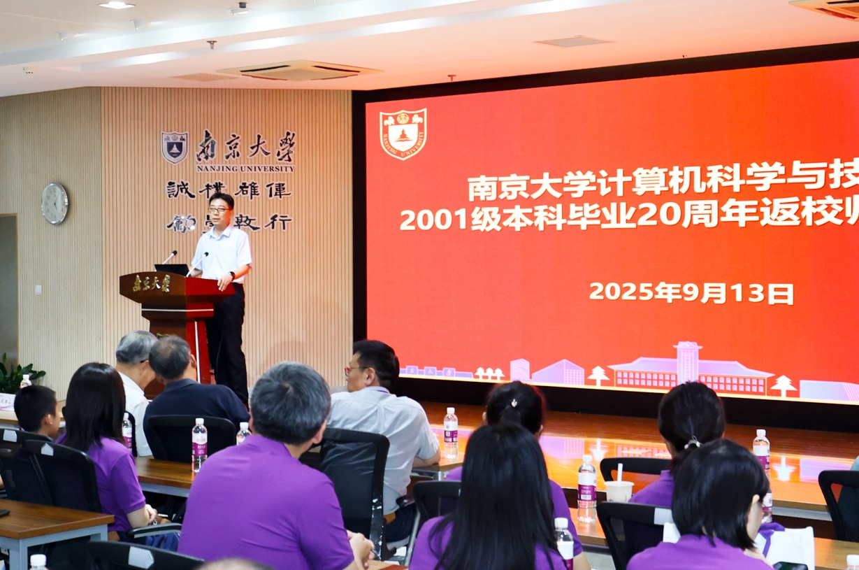 返校活动的高潮是于仙林校区计算机楼举行的师生见面会。中国科学院院士、前校长吕建教授,学院党委书记武港山、院长马晓星、院党委副书记宫玲琳、辅导员曹迎春,以及当年的任课恩师张泽生、陈家骏、曾庆凯、李宁、赵建华等老师亲临现场,与同学们欢聚一堂。