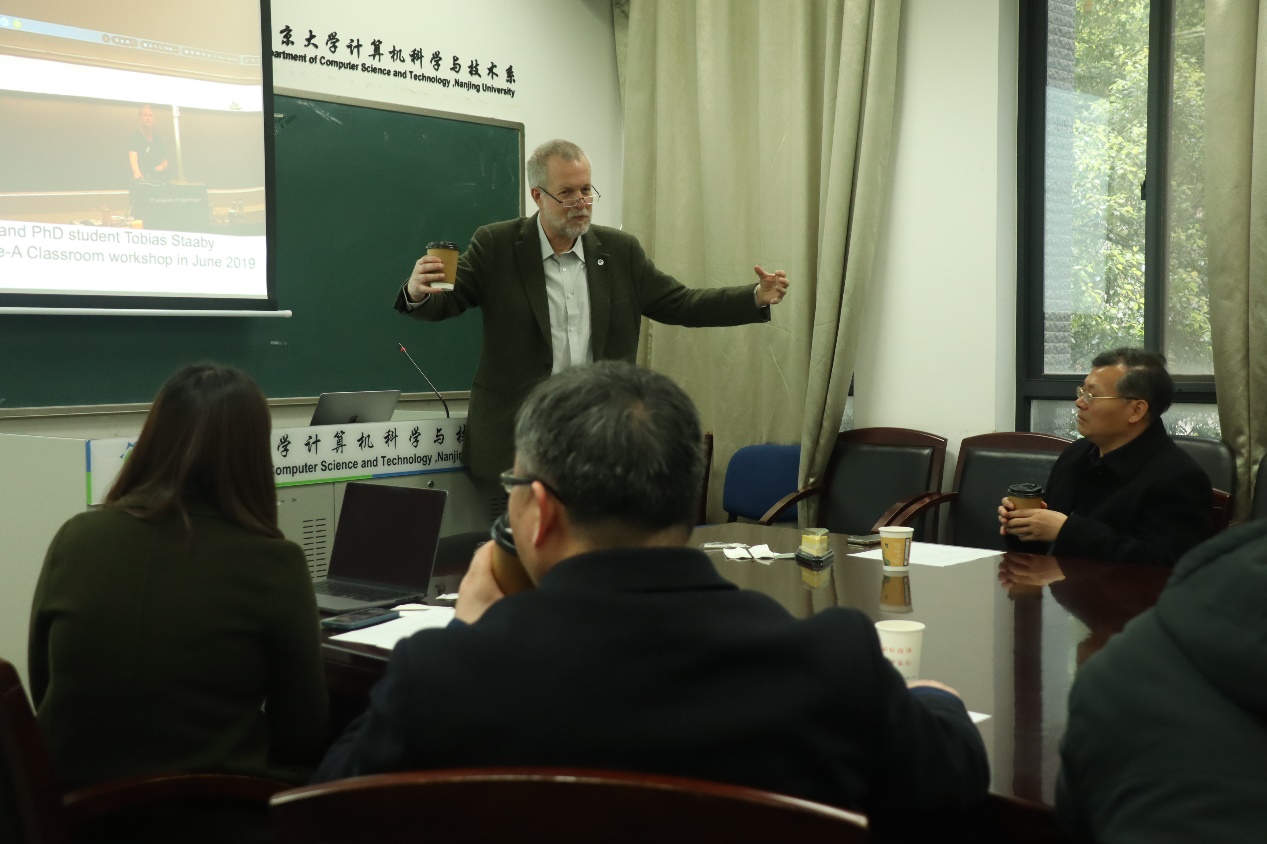 202346日,哥本哈根信息技术大学教授、丹麦皇家科学院院士、欧洲科学院院士Espen Aarseth教授应邀到我校计算机科学与技术系进行学术交流。计算机系以高阳教授为代表的团队和艺术学院以何成洲教授为代表的团队联合与Espen Aarseth教授举行座谈并展开了深入讨论。