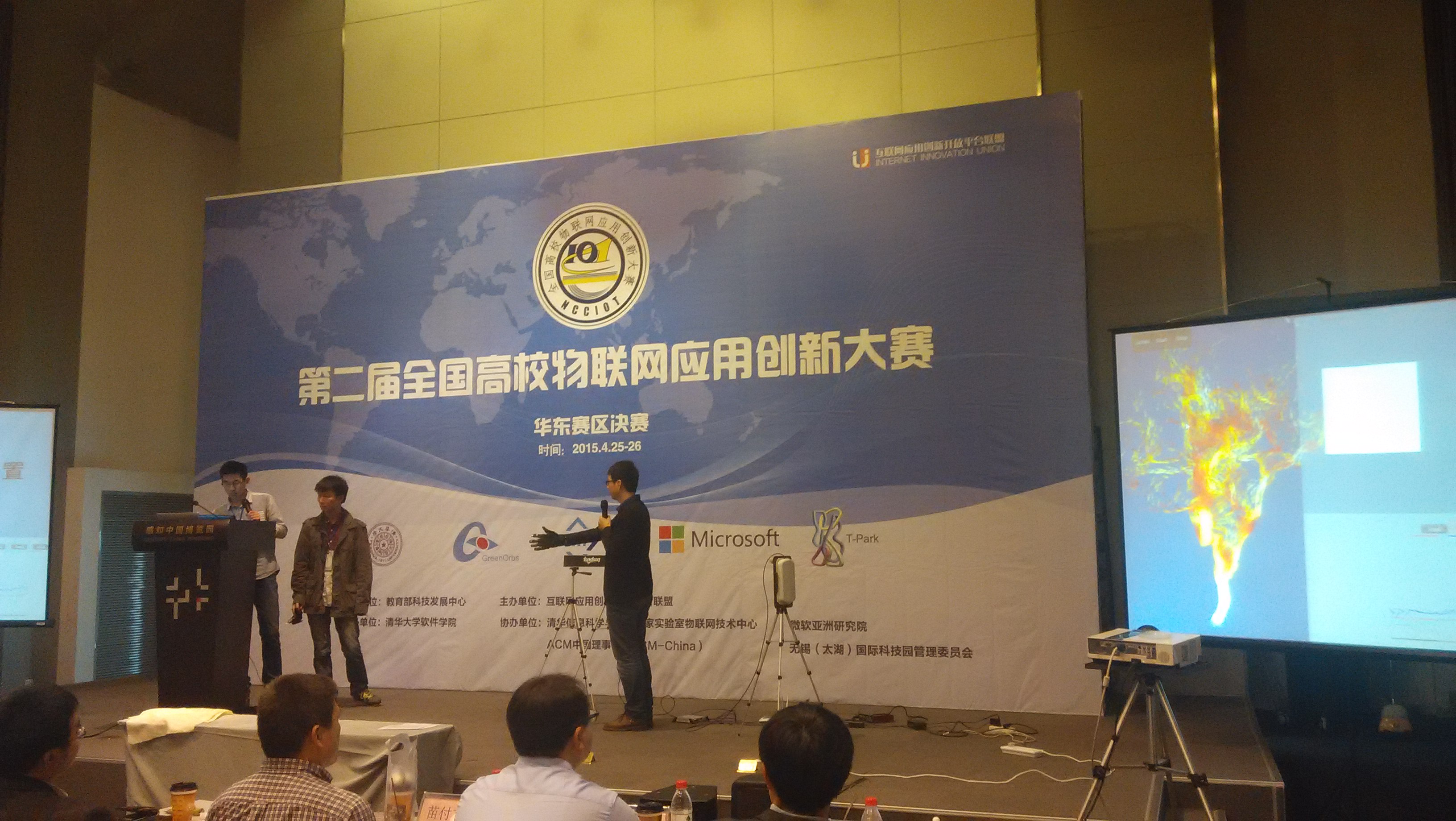 4月25日,第二届全国高校物联网应用创新大赛创意赛华东赛区决赛在无锡新区感知中国博览园会议中心成功举办。此次华东赛区决赛共有包括上海交通大学、浙江大学、探花直播 、解放军理工大学、南京理工大学、南京邮电大学、苏州大学等在内的几十所高校参加。来自我系分布式计算团队(成员:孙健强、蔡庆亮、王楚豫;指导教师:谢磊、陆桑璐),凭借“ RF-Glove:基于RFID的高精度隔空交互系统”,从华东赛区百余支优秀队伍中脱颖而出,夺得华东赛区最高奖一等奖。 本次赛事由教育部科技发展中心主管、互联网应用创新开放平台联盟主办、清华大学软件学院承办、清华信息科学与技术国家实验室物联网技术中心、 ACM中国理事会、无锡(太湖)国际科技园管理委员会共同协办。 我系分布式计算团队的“RF-Glove”系统,基于RFID的信号强度和相位数据,合理利用RFID在真实环境下的一些特性,完成了2~5cm级别的手指感知,并通过感应手套隔空弹奏“两只老虎”及手势控制图这两个展示,让现场掀起了一阵小高潮,最终征服了在场的评委和观众。RF-Glove系统不仅仅挑战了相关学术领域的技术难题,而且提供了一种轻量级和无线化的隔空交互方案,弥补了市场现有产品的不足。目前,该团队正在进一步的完善系统,将代表华东赛区参加全国总决赛。 具体赛事链接请参考: //iotcompetition.org/2014/new_150427_2.html