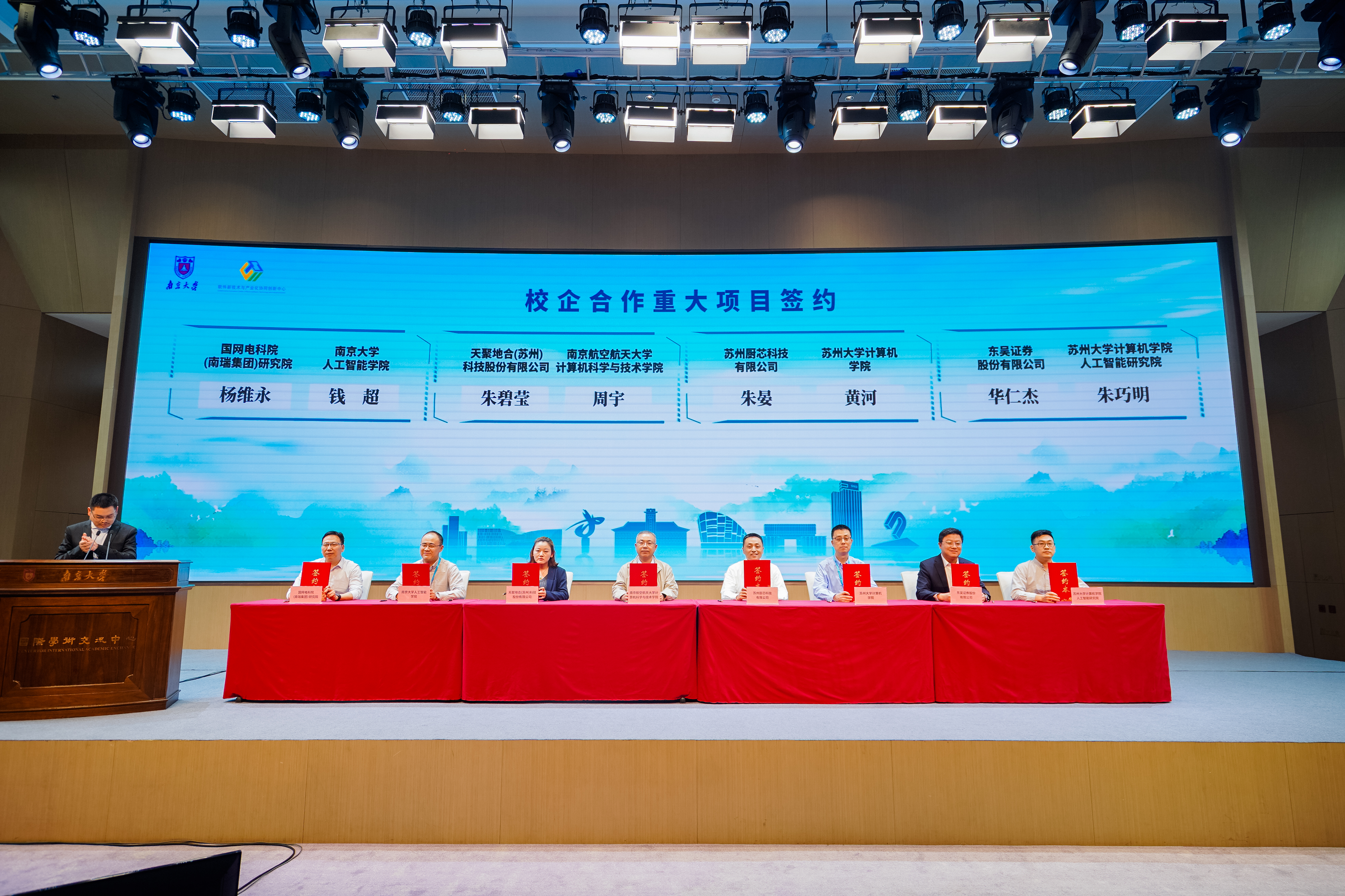 大会聚焦实体产业痛点,推动校企“双向奔赴”,促成多项标志性合作。探花直播 、南京航空航天大学、苏州大学等协同高校与国网电科院(南瑞集团)研究院、中移云能力中心、苏州天一信德环保科技有限公司等企业达成十多项意向合作签约,涵盖人工智能、环保物联网、智能制造等领域,将进一步推动高校科技成果转化,促进产业协同融合发展。