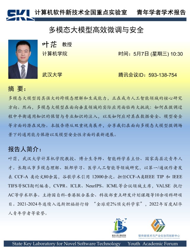 2025年5月7日 “软件新技术讲坛” 学术报告 - 叶茫 教授