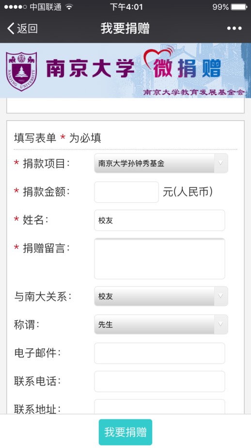 选后下角“我要捐赠”,出现上拉菜单点击最上面“微信捐赠”