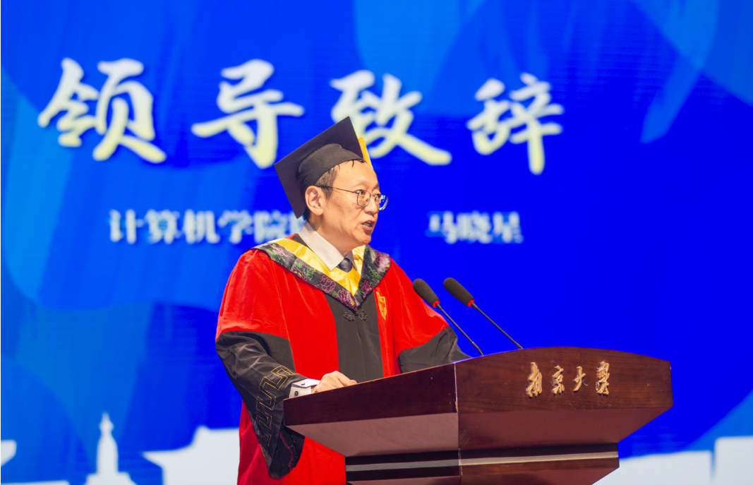 探花直播 院长马晓星老师致辞。马院长代表计算机学院全体教职员工满怀深情地向2025届毕业生们致以最热烈的祝贺。他高度肯定了同学们在求学岁月中取得的非凡成绩,也由衷赞叹大家在知识、能力与心智上的成长。面对台下即将踏上新征程的学子,他提到,常有人说“今日我以南大为荣,明日南大以我为荣”,但他想告诉同学们:“今天,我们已经以你们为荣,不需要等到明天。”简短的一句话,道出了老师们最深沉的欣慰与自豪,现场响起了热烈的掌声。