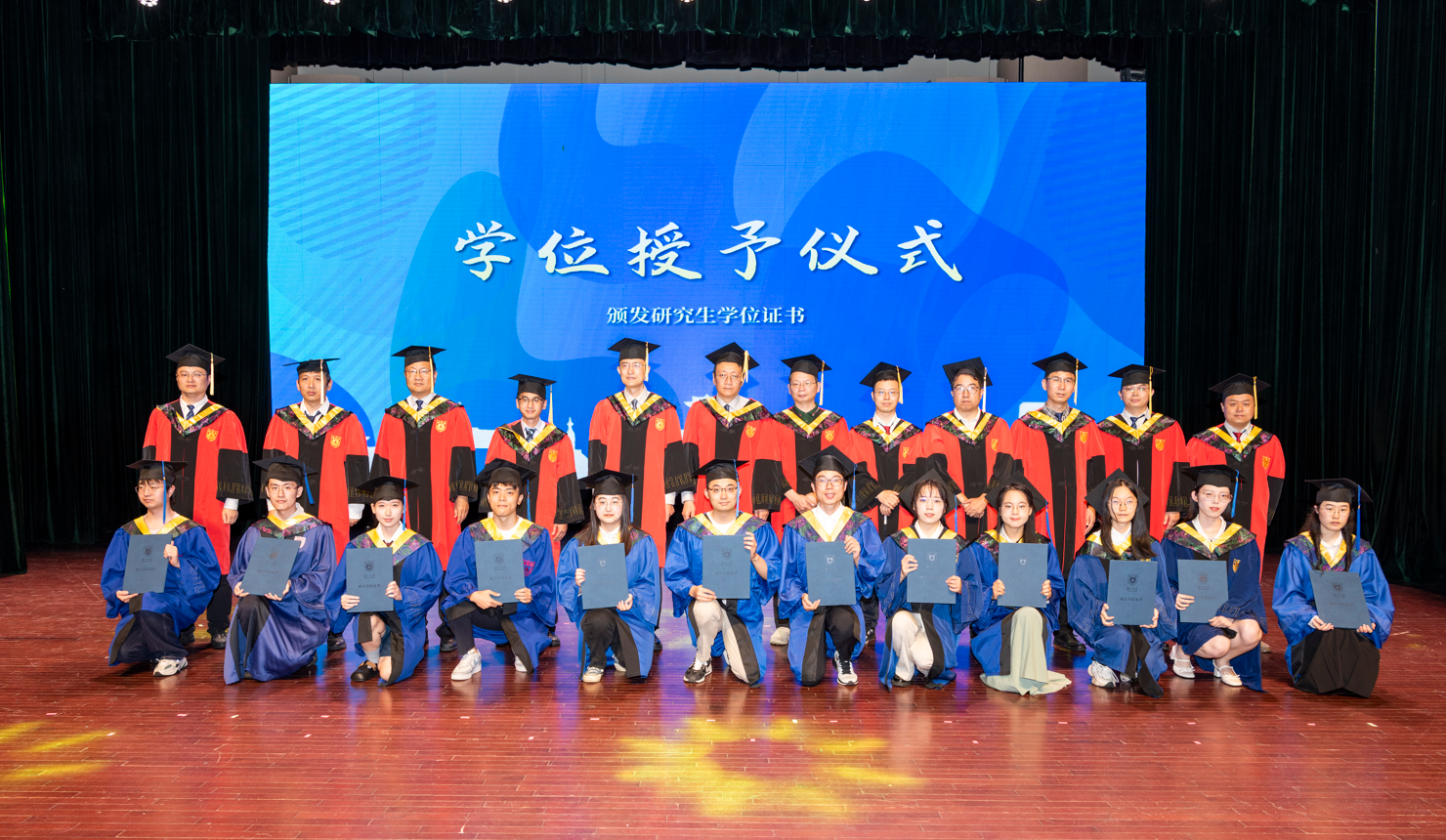 典礼后半程,激动人心的学位授予仪式按计划有条不紊地进行。马晓星老师、赵建华老师、路通老师、唐杰老师、张胜老师、李文中老师,田臣老师、华景煜老师、杨已彪老师、许畅老师、张渊老师、王豫老师为依次上台的本硕博毕业生们逐一颁发学位证书,并进行拨穗、合影,共同见证着这一荣耀时刻。
