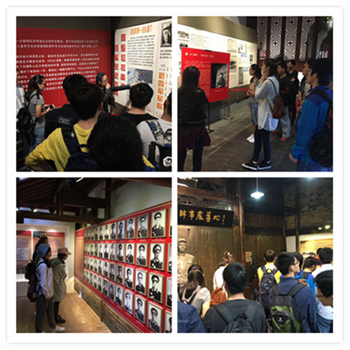 在计算机系党委副书记李宁老师、各支部书记(辅导员)的带领下,支部党员同学首先来到位于高淳老街中的新四军驻高淳办事处旧址。在抗日战争期间,新四军在高淳老街的办事处为高淳县城地区建党做了大量的工作,为高淳地区民众坚持长期抗战打下了基础。老宅内部,有新四军军长陈毅将军的塑像,有重新还原的当年新四军驻高淳办事处工作、学习的场景,还有珍贵的照片和详细的史料。墙上醒目的新四军铁军情怀诠释的精神正体现出了如今“两学一做”中“讲政治,有信念”的要求:“听党指挥,忠于人民,坚贞不渝的铁的信念;不怕牺牲,敢于胜利,百折不挠的铁的意志;军民一致,官兵一致,牢不可破的铁的团结;令行禁止,执纪严明,秋毫无犯的铁的纪律;勇敢顽强,英勇善战,所向无敌的铁的作风”。大家了解了新四军在高淳地区的重要发展进程,重温了中国共产党领导人民取得胜利的光辉曲折历程,更体会到我们的党和国家从成立至今一直永葆先进就是因为我们拥有一支对党绝对忠诚、有鲜明的政治立场立场,严肃的政治纪律的革命队伍。