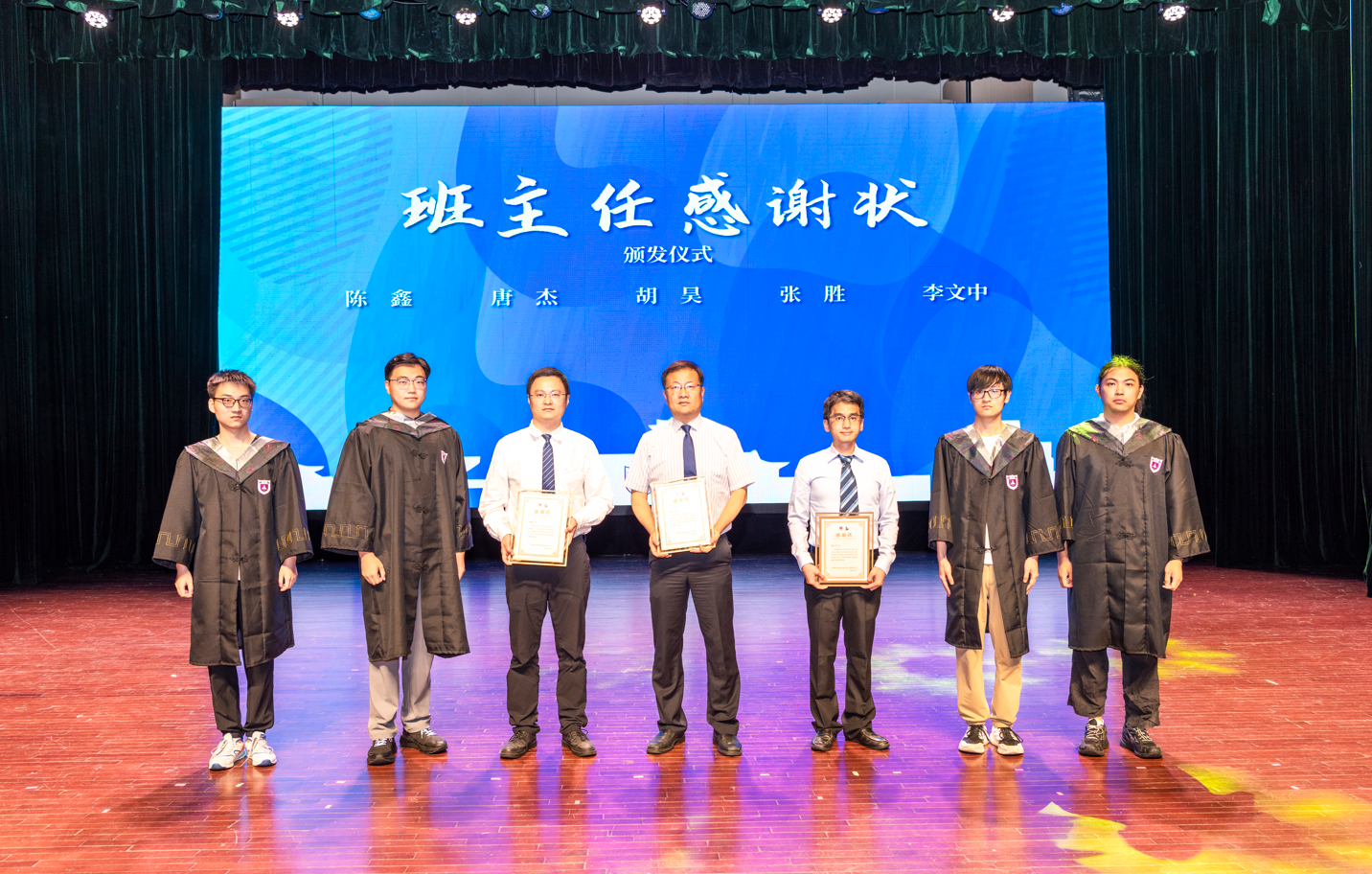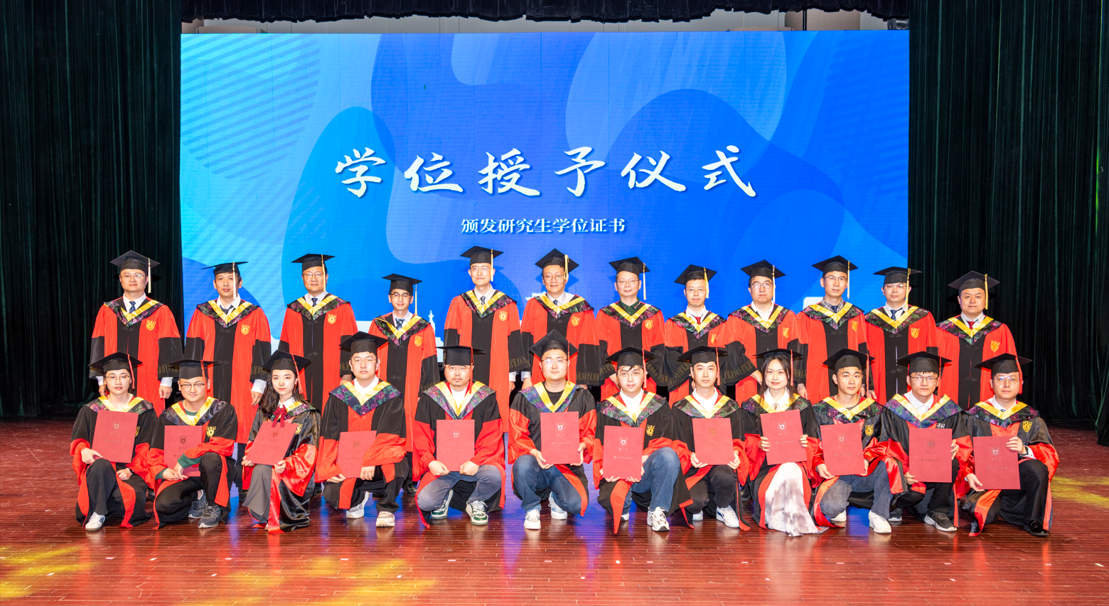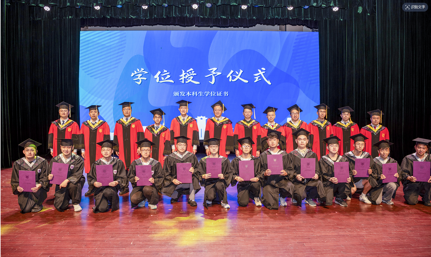 典礼后半程,激动人心的学位授予仪式按计划有条不紊地进行。马晓星老师、赵建华老师、路通老师、唐杰老师、张胜老师、李文中老师,田臣老师、华景煜老师、杨已彪老师、许畅老师、张渊老师、王豫老师为依次上台的本硕博毕业生们逐一颁发学位证书,并进行拨穗、合影,共同见证着这一荣耀时刻。