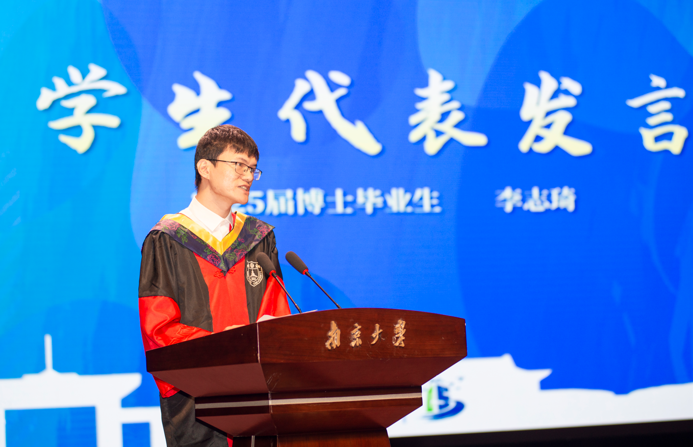 数载求知路,此刻已化作青春扉页上的珍贵印记;明日新征程,更需以专业所学践行时代赋予的责任与担当。2025届毕业生即将迈入人生新阶段,开启崭新篇章,面临离别的不舍,内心深处也有许多话想对母校和学院诉说。本科生蒋鹏宇同学和博士研究生李志琦同学分别作为本科生代表、研究生代表上台抒发毕业感言,深情寄语引发在场师生强烈共鸣。