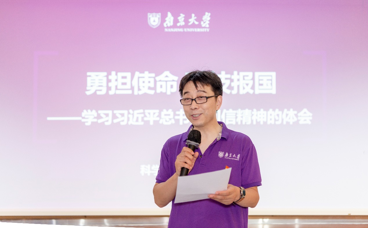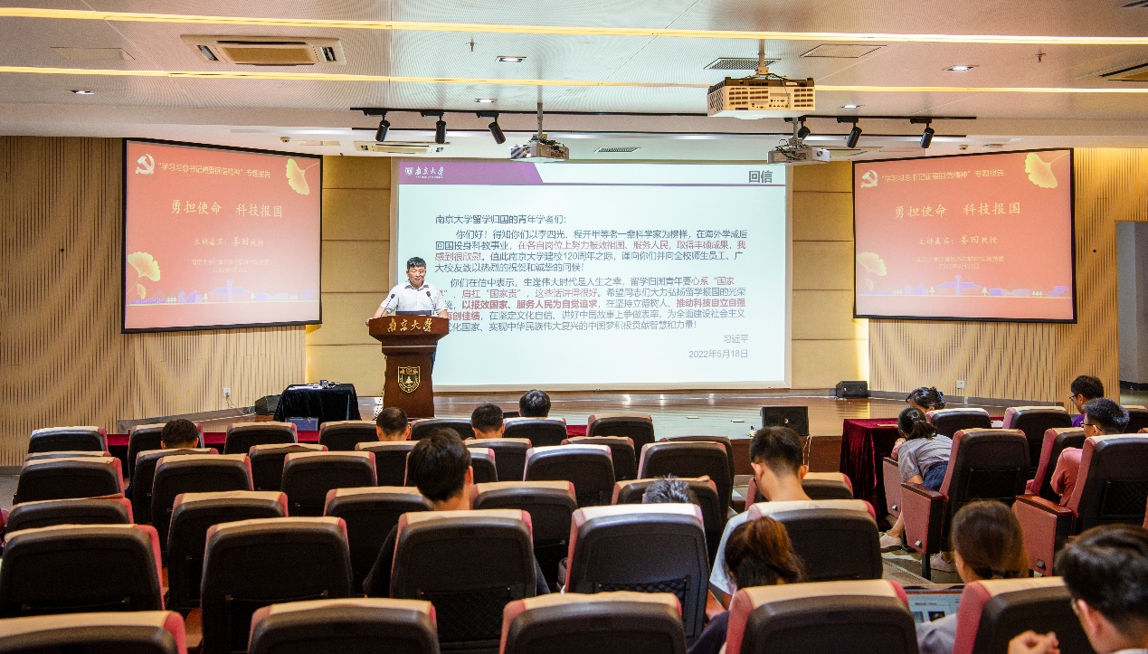 姜田教授首先带领大家重温习近平总书记重要回信内容,以及总书记对全体南大人的殷切期望和谆谆嘱托。总书记回信中提到李四光先生,姜教授认为他用一生诠释了“有一种无悔选择叫做国家需要”,这种“报效国家,服务人民”的老一辈科学家精神,让人敬佩。